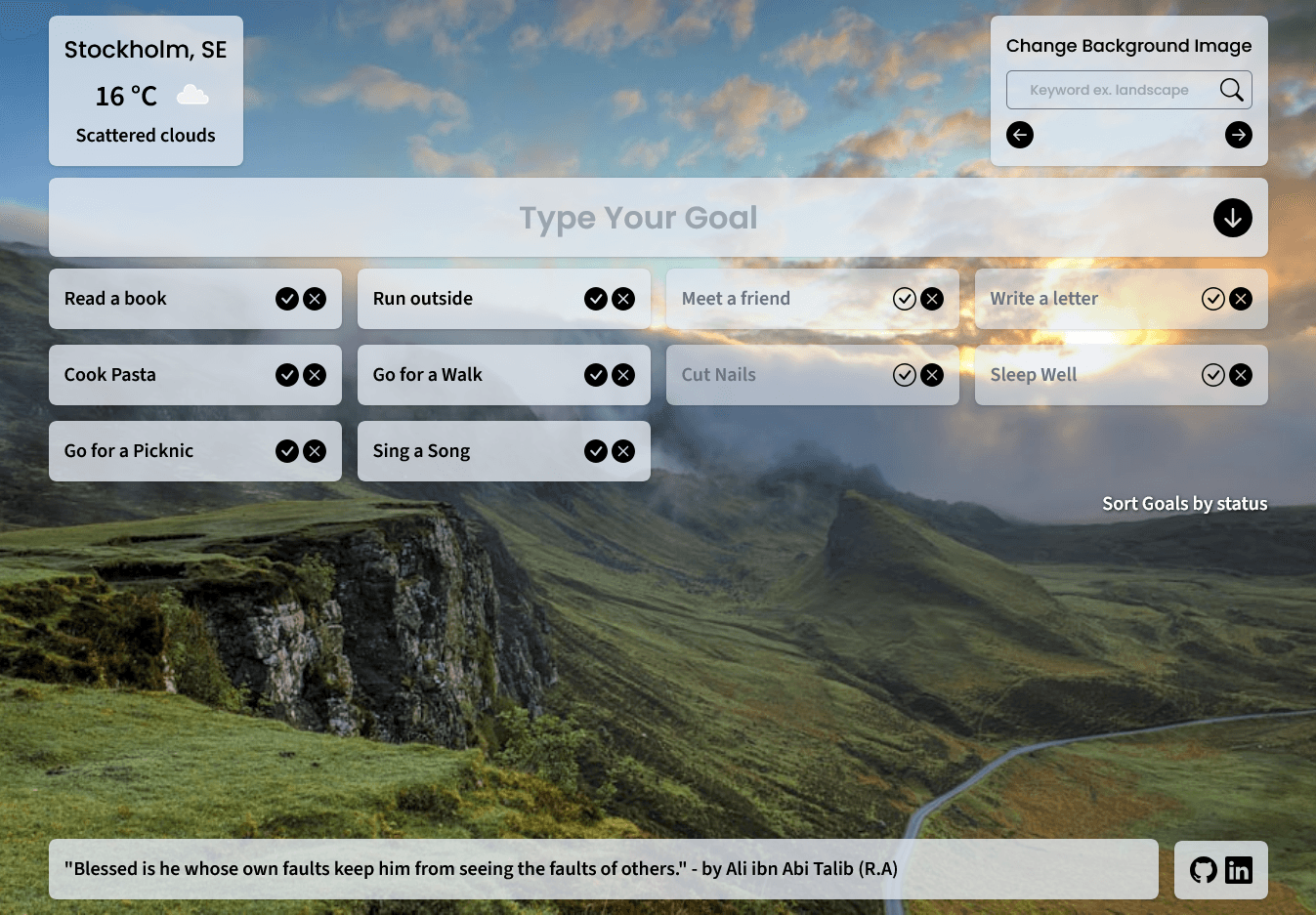 Inspiration HubReact.js, TypeScript, Vite, Redux, API (Open Weather, Unsplash, Quote by DummyJSON), Figma, Tailwind