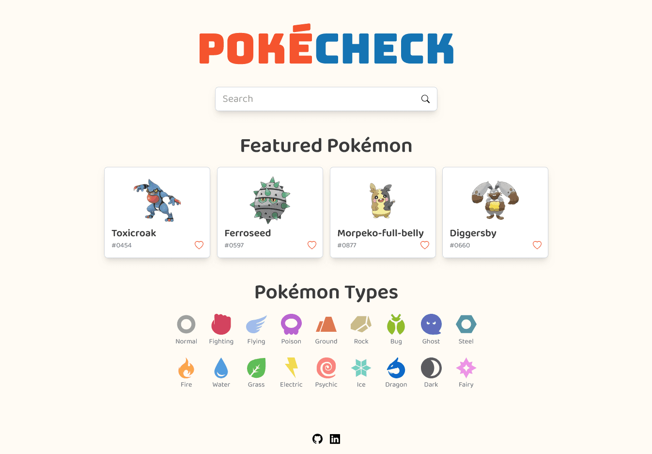 PokeCheckNext.js, TypeScript, Tailwind CSS, Axios, Jest, Storybook, React.js, Figma, Vercel, Redux, Tanstack Query, Lighthouse, Wave, Responsive Design, API